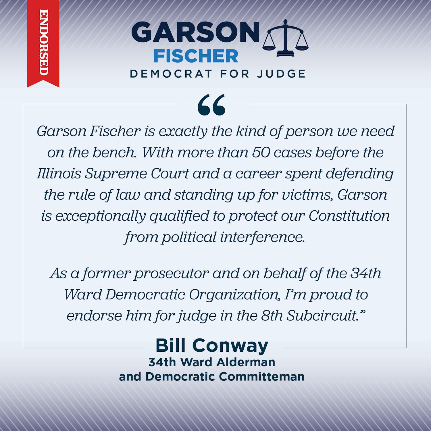 Garson Fischer has been endorsed by Alderman Bill Conway in his bid for judge of the 8th Subcircuit.